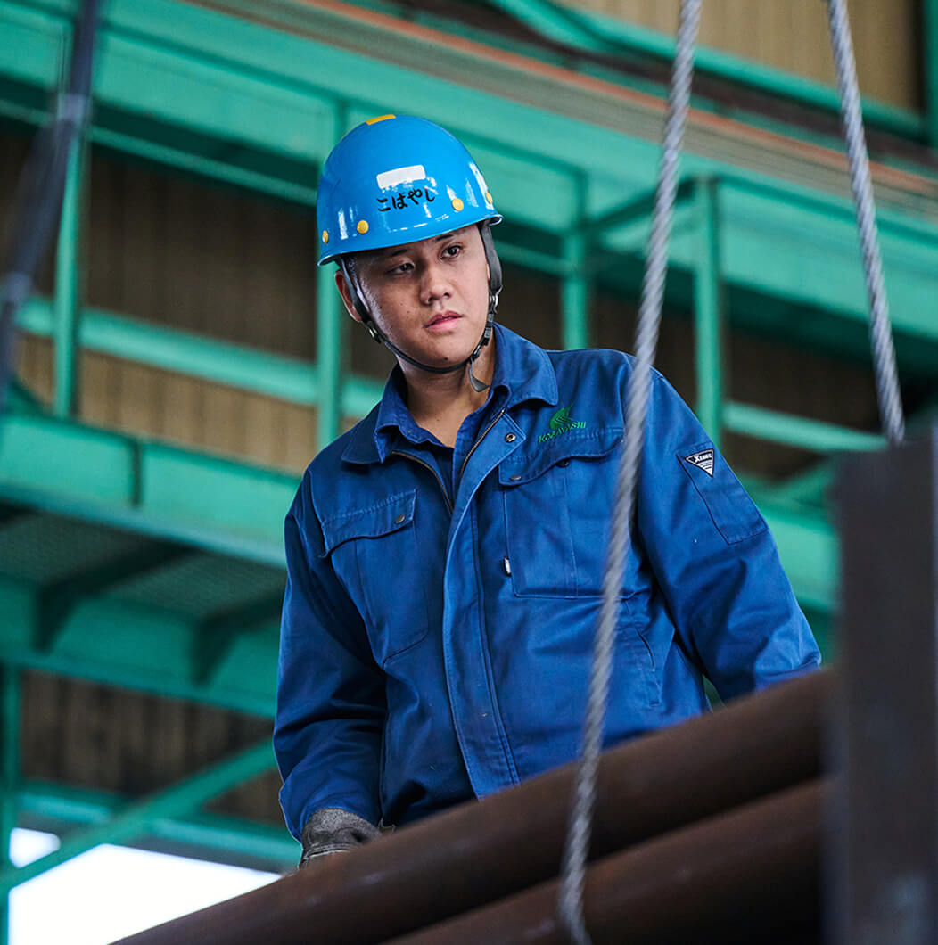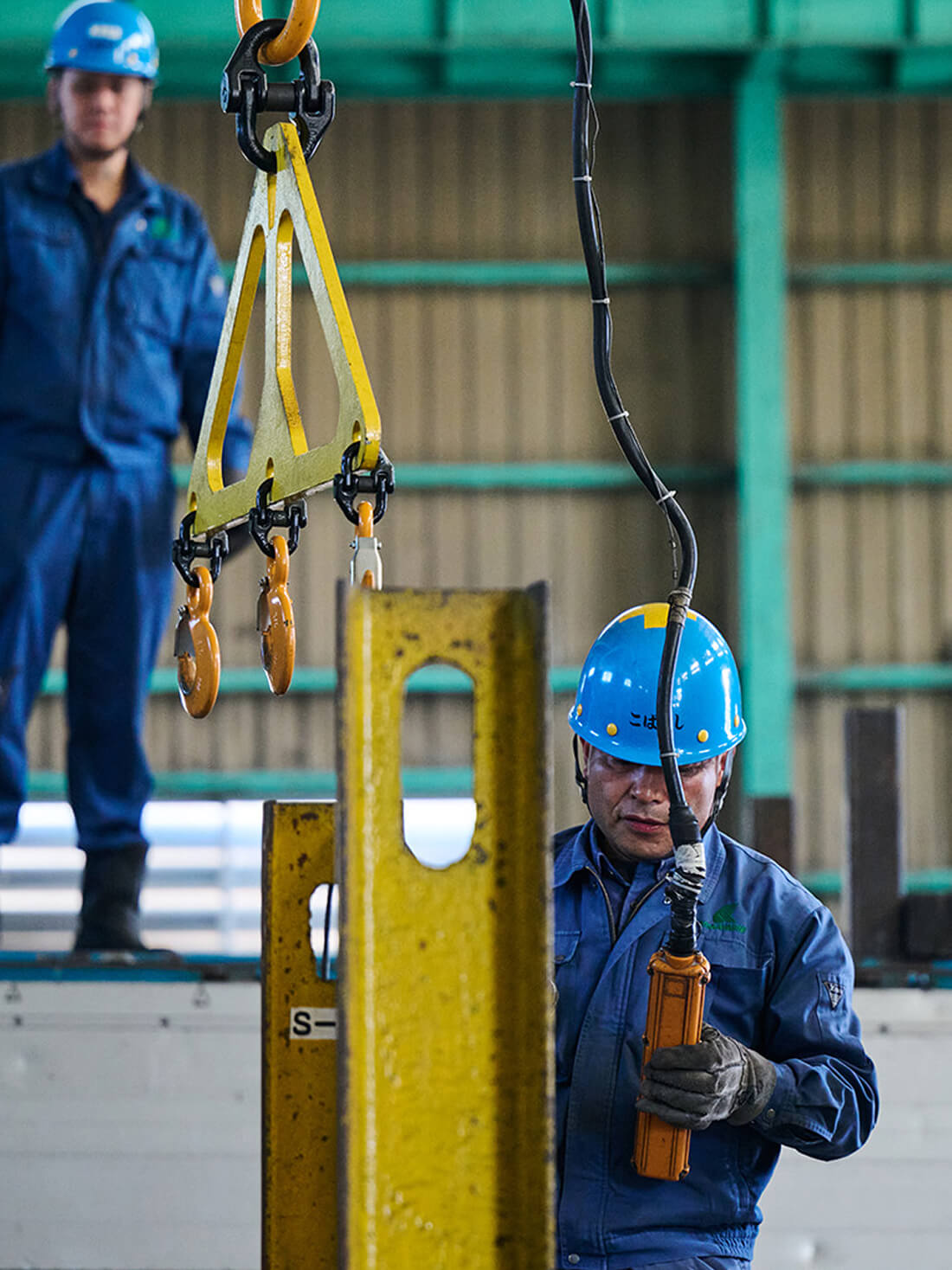 重量のある複雑な形状の鋼材を、安全かつ確実にお客様へ