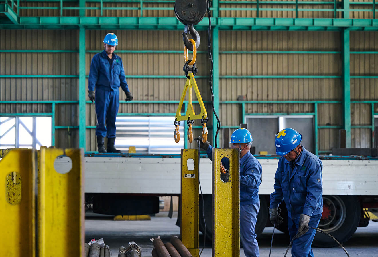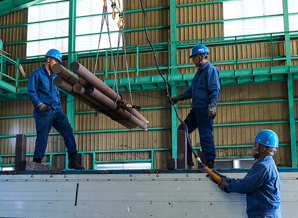 特殊鋼材とは、普通の鋼材よりも強度が高く壊れにくい素材のこと。複雑な形状のものも多く、高い技術と経験が求められる輸送です。配送エリアは北海道から山口まで全国に対応しており、特に大阪、兵庫、愛知方面への配送実績が豊富です。大同特殊鋼様をはじめとする製鉄メーカー様との長年の取引を通じ、お客様の大切な製品を安全かつ確実にお届けしています。